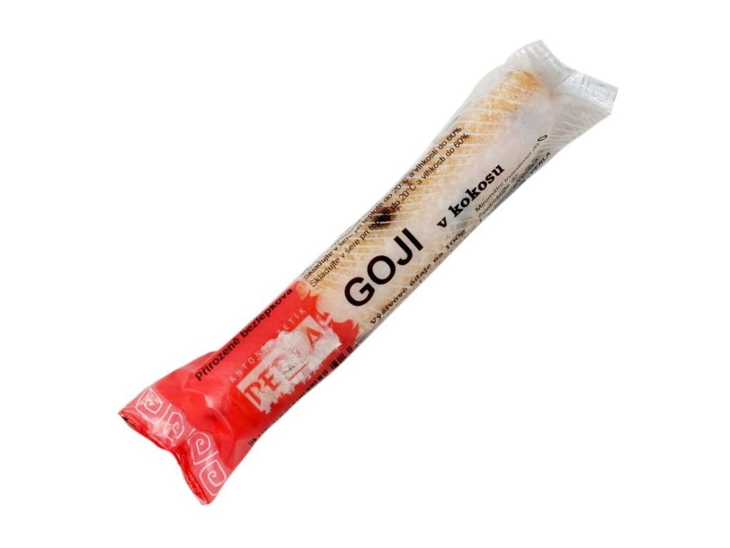 kokos, glukozový sirup, goji-kustovnice čínská min.10%, sušená syrovátka, rýžová mouka