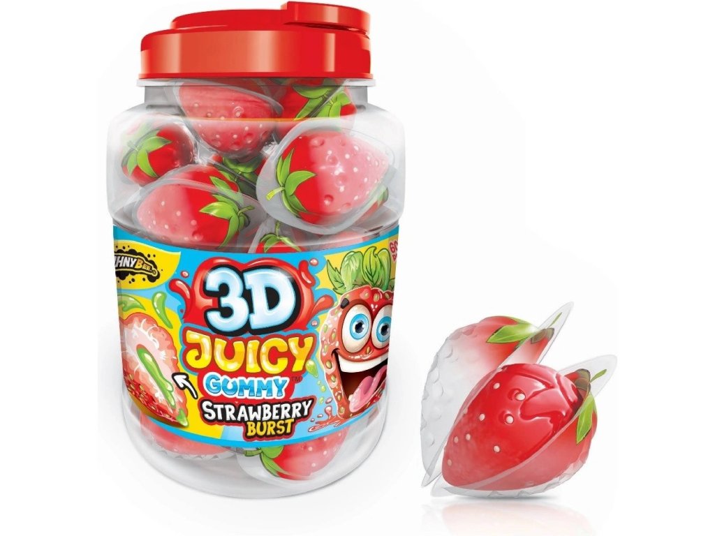 Každý kousek je 3D želé bonbon ve tvaru šťavnaté jahody s ovocnou příchutí a náplní uvnitř, která potěší nejen děti, ale i dospělé. Bonbony jsou jednotlivě hygienicky balené.