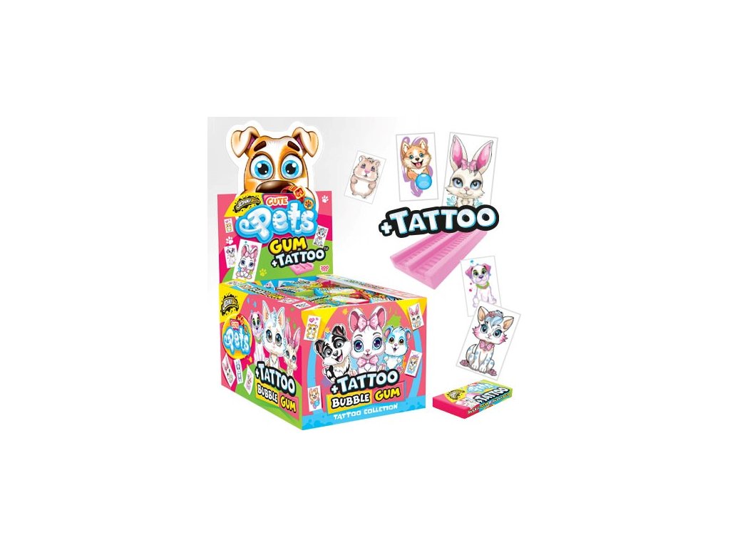 Úžasné žvýkačky s příchutí tutti frutti potěší každé dítě nejen svou lahodnou chutí, ale i překvapením uvnitř – každá žvýkačka totiž obsahuje zábavné dětské tetování zvířátek. Každá žvýkačka je hygienicky balená samostatně, což usnadňuje manipulaci a rozdávání při různých akcích.