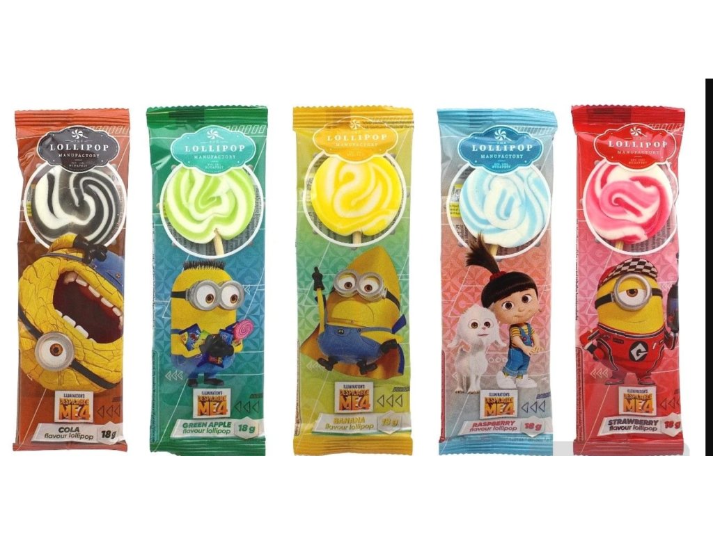 Ovocná lízátka, jednotlivě balená s motivem s filmu Já padouch 4.