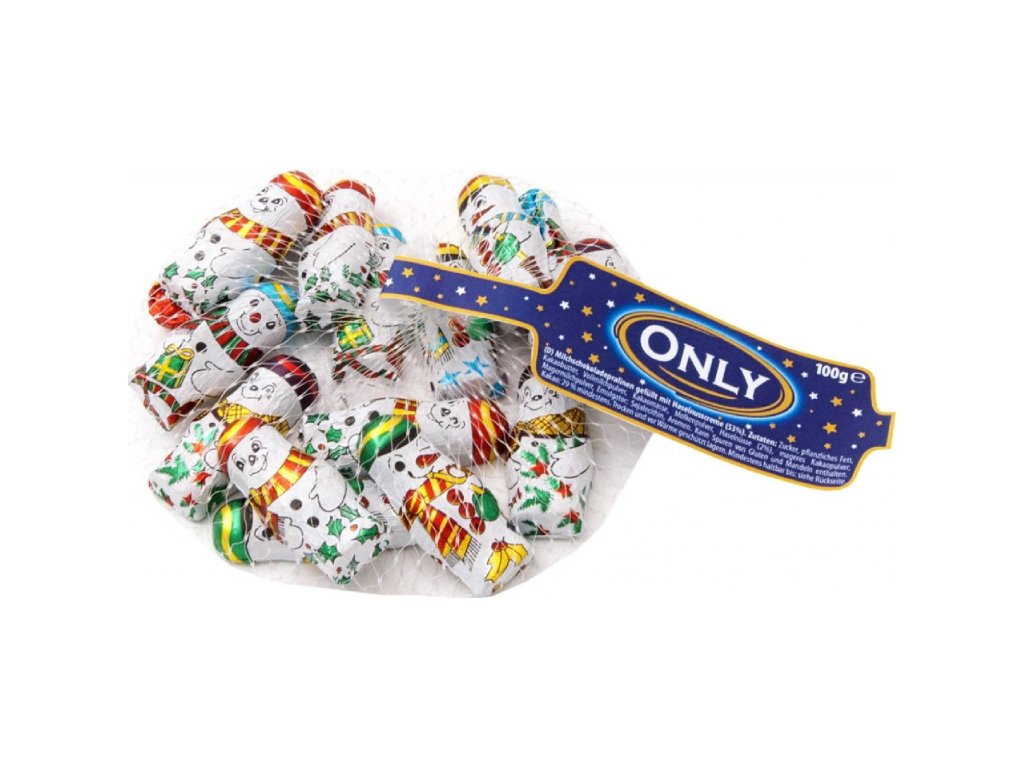 Mléčné čokoládky s motivy Sněhuláka v síťce 85g