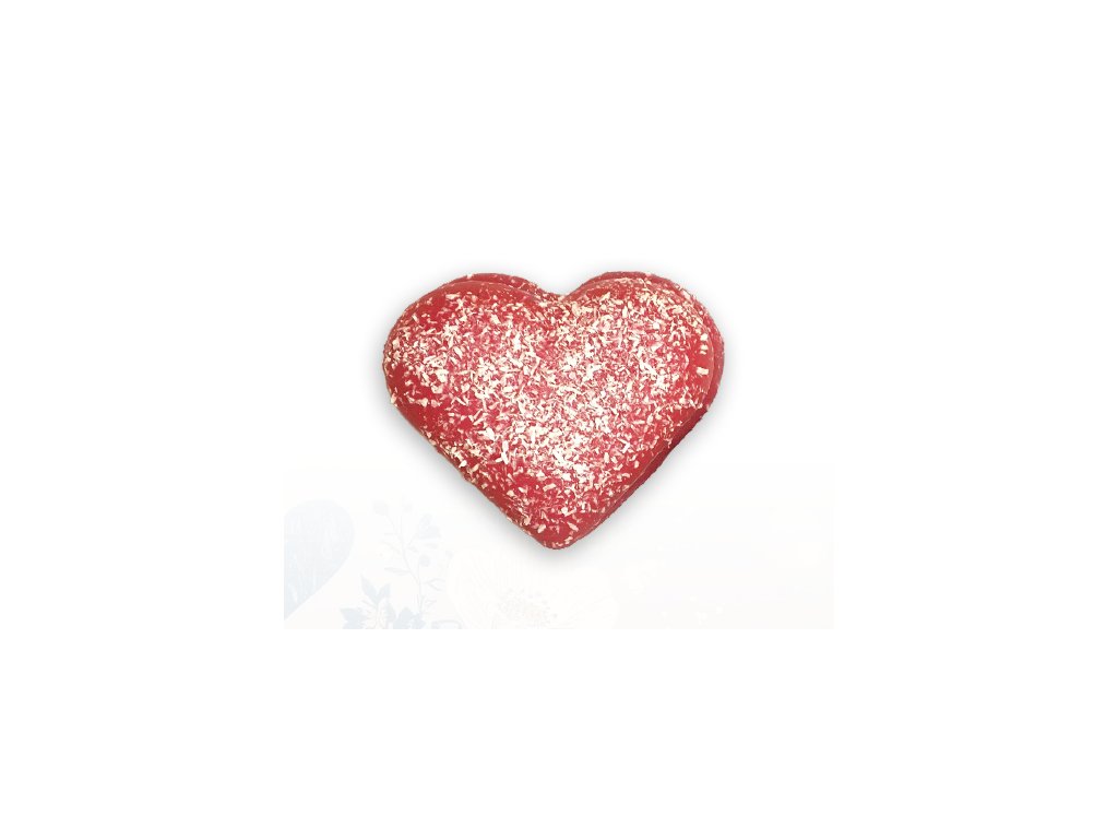 Perník ve tvaru srdíčka s ovocnou náplní v cukrářské polevě.
