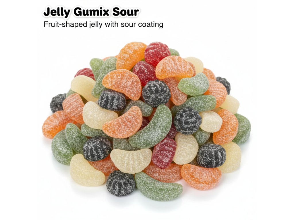 Želé gumix kyselé 500g je lahodná kombinace ovocných želé ve tvaru ovoce, která potěší každého milovníka sladkostí! 🍋🍓 Každý kousek je posypaný kyselým cukrem, který dodává extra šmrnc a osvěžení. Užijte si explozi chutí, která vás přenese do světa sladko-kyselých radostí. Perfektní pro sdílení s přáteli nebo jako sladká odměna po náročném dni. 🎉